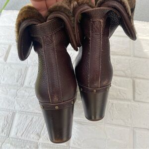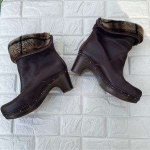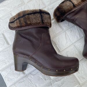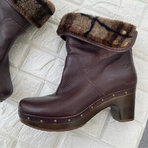 UGG Cora Lynn Plaid Brown Leather Clog Booties 8