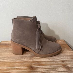 UGG Corin Grey Taupe Heeled Suede Bootie with Tassels Women’s Size 6
