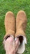 Cozy brown suede ankle boots with plush fur lining. Perfect for cold weather.