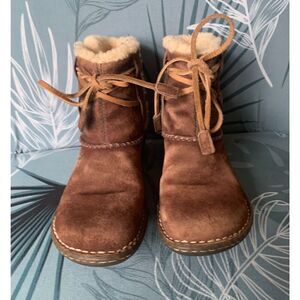 Whether you're navigating the bustling city streets or enjoying a tranquil walk in the park, these boots are tailored for a variety of occasions, from business to casual. The round toe and flat heel ensure a comfortable fit for all-day wear, while the cushioned insole and breathable wool insulation keep your feet cozy during the cooler seasons of fall, spring, and winter. Amazing gently used condition! Some signs of wear with tons of use left in them!