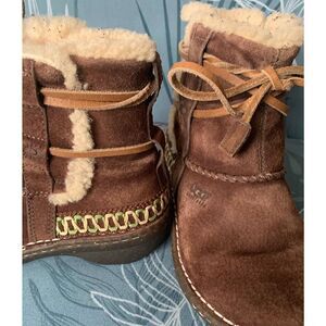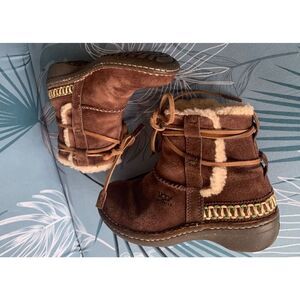 UGG Cove Suede Embroidered Sheepskin Shearling Moccasin Tie Ankle Boot sz 6