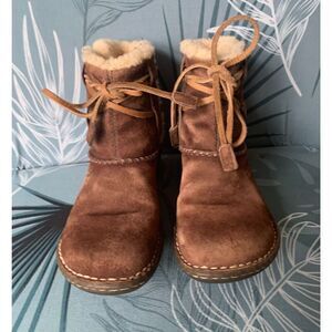 Whether you're navigating the bustling city streets or enjoying a tranquil walk in the park, these boots are tailored for a variety of occasions, from business to casual. The round toe and flat heel ensure a comfortable fit for all-day wear, while the cushioned insole and breathable wool insulation keep your feet cozy during the cooler seasons of fall, spring, and winter. Amazing gently used condition! Some signs of wear with tons of use left in them!