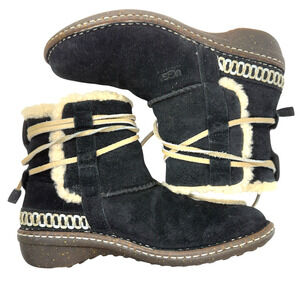 UGG Cove Winter Short Ankle Boots Black Suede Leather Wrap around Lace Size 8