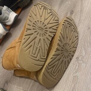 Warm and stylish tan suede UGG boots with plush lining. Perfect for cold weather.