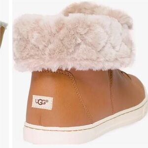 Stylish Ugg leather boots with quilted design. Lace-up front. Comfortable and chic.