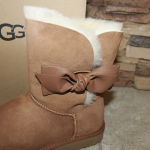 UGG DAELYN LEATHER BOW SUEDE BOOTS NEW! CHESTNUT