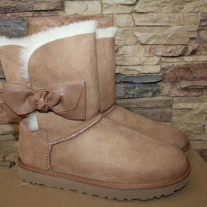 A feminine bow elevates this classic genuine shearling lined boot for cozy and stylish look.