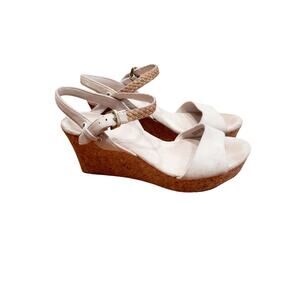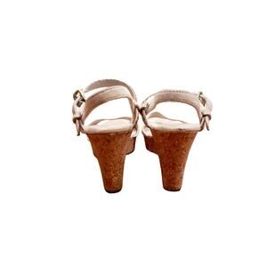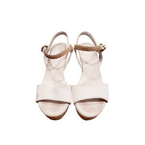 Style: Beige/tan platform wedge sandal. Suede straps. Braid detail on straps. Buckle closure at ankle. Approximately 3.25 inch heel. Perfect for spring and summer!
