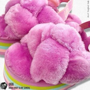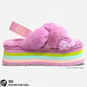 UGG DISCO KNOT PLATFORM SLIDE SANDAL IN WILDFLOWER FUCHSIA SIZE 7 WOMEN’S SHOE