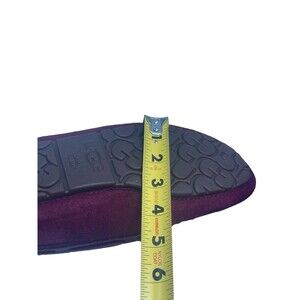 The slippers have a flat heel, making them comfortable for all-day wear. The lined and cushioned insole provides extra comfort, while the wool lining will keep your feet warm. These handmade slippers also feature a cute bow and UGG logo accents. They are perfect for casual occasions and outdoor adventures. Measurements photographed. See pictures, please. Ships quickly