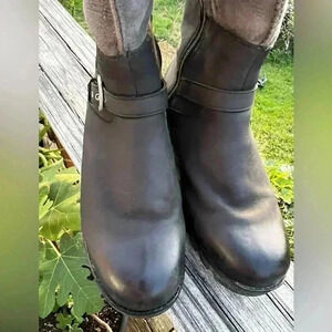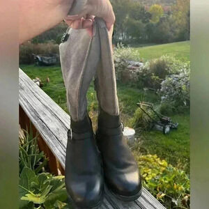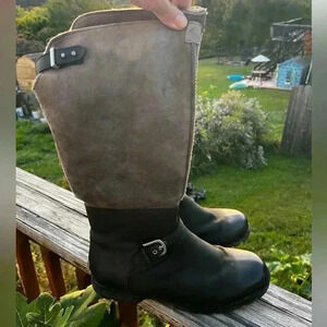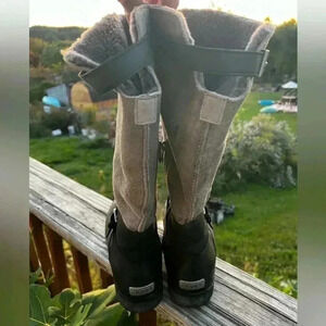 UGG Daleane Boots In Black & Charcoal Gray Womens Size 10 Leather/Shearl…