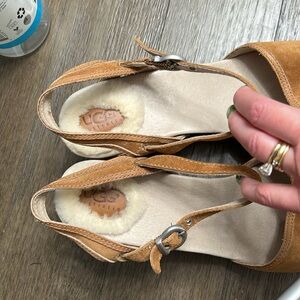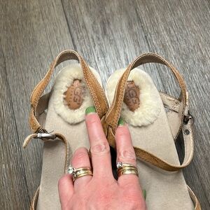 UGG Delray Tan and Cream Sandals with Suede Upper and Ankle Strap Size 11