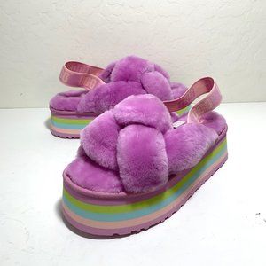 UGG Disco Knot Slides Platforms Sandals Sheepskin Wildflower Size 9 NEW