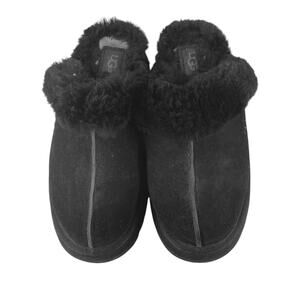 UGG Disquette Black Faux Shearling Faux Fur Slip On Platform Clogs Slippers Size 8
