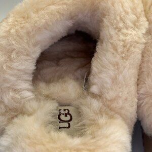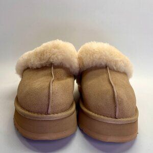 UGG Disquette Suede Sheepskin Slip-On Slipper Size 7 Tan Platform Slippers