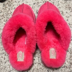 Slip into plush comfort with these vibrant pink UGG slippers. Ideal for relaxing at home.