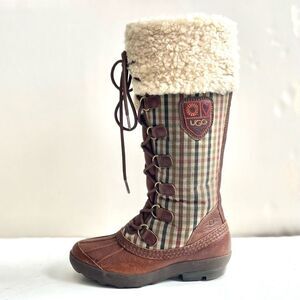 UGG Edmonton Plaid Sheepskin Shearling Boot Size 6 EU 37