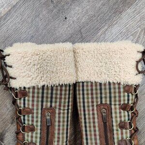 UGG Edmonton Tall Boots 3226 Green Plaid Brown Leather Sheepskin Shearling 7
