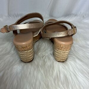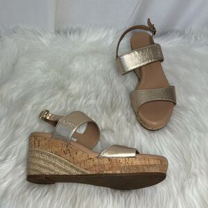 UGG Elena Metallic Gold Leather Espadrille Platform Sandals Sz 9.5
