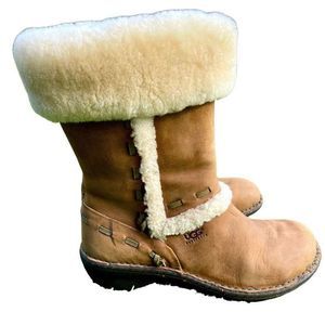 UGG Elijo Chestnut Leather & Shearling Boots — SZ 8 EXCELLENT CONDITION