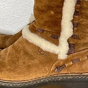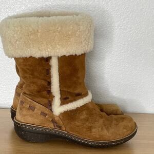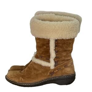 UGG Elijo Leather Sheepskin Boots Shearling Sherpa Mid Calf Warm