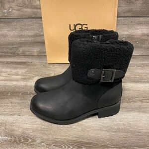 Cozy, elegant, and weather-ready, our Elings Boot is crafted from waterproof leathers with seam-sealed construction to help protect your feet from light rain and snow, keeping your shoes looking better for longer. Featuring a fluffy cuff and warm lining made from our ultra-soft UGGplush™ wool blend, it incorporates a functional buckle for cinching around jeans and leggings. Pair with dark denim and a sherpa jacket.