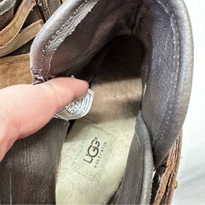 UGG Emalie stout brown leather bootie boot sherpa insole women's 11 sn 1008017