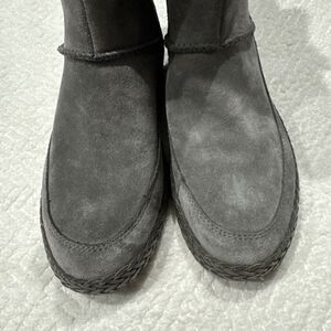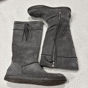 UGG Emerie Knee High Flat Boots Charcoal Gray Suede Tassel Charm Sz 7
