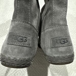 The UGG Emerie Knee High Flat Boots in Charcoal Gray Suede with Tassel Charm are a stylish and versatile choice for women. These boots feature a round toe, zip closure, and a flat heel, making them perfect for travel, parties, or casual wear. The tasseled accents add a touch of charm to the design, while the suede upper material and comfortable M width ensure both style and comfort. Made in Australia by the reputable brand UGG, these boots are a must-have addition to any wardrobe.