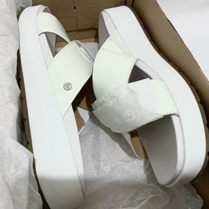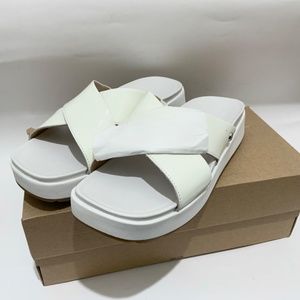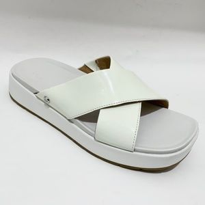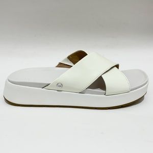 UGG Emily Slide Cross Strap Sandals White Patent Leather Platform Slip On 7.5