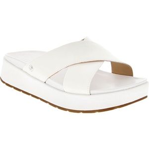 UGG Emily Women’s Slide Cross Strap Sandal White Patent Leather Platform Slip On Summer Shoes