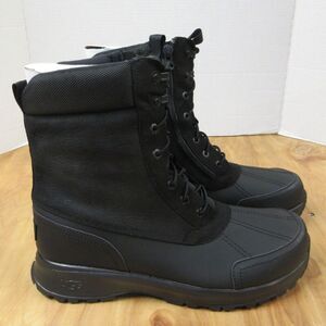 UGG Emmett Waterproof Leather Duck Boots Hi Sz 12 Black Lug Sole Winter Snow NWT