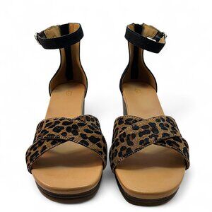 UGG Eugenia Leopard Print Womens Ankle Strap Wedge Sandals Black & Brown Size 10