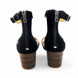 UGG Eugenia Leopard Print Women's Ankle Strap Wedge Sandals in Black and Brown, Size 10, are a stylish and versatile option for any occasion. With a mid-height wedge heel and strappy design, these sandals feature a zip closure up heel and ankle strap for added comfort and security. Made with suede upper material and suede insole, these sandals are perfect for summer, fall, and spring events such as weddings, parties, or business meetings. The animal print pattern adds a touch of glamour, while the UGG logo accentuates the brand's reputation for quality and style. Condition: New Other ( Very Small Scratch on Side of (L) Shoe) From Storing. SEE LAST PICTURE