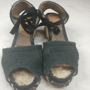 UGG F8007L AUSTRALIA black fabric Espadrille Wmns ANKLE TIE STRAP WEDGE OPEN TOE SANDALS 7 M. Condition is Pre-owned. Shipped with USPS Priority Mail. 244pem