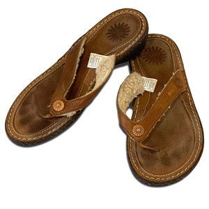UGG F8910A. sherpa lined flip flop sandals 6/EUR 37 tan