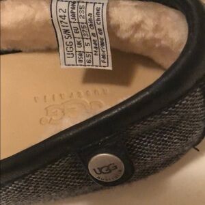 Stunning UGG flat shoes . Feels like cotton . Very soft and cozy inside . Both buckles have UGG logo also two logos in the sides Awesome colors and quality . No flaws or damages permit conditions