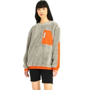 The UGG Niko Sherpa Crewneck brings incredible softness and comfort to your whole look. This cozy crewneck ensures all-day warmth, thanks to the double-face Sherpa construction. Identified by a distinct UGG graphic embroidered grosgrain tag, this layer features a chest pocket with waterproof nylon coil zipper closure and a metal zipper pull. The rib-knit neck opening along with the elasticized hem and cuffs keeps this crewneck in place.Chest-pocket offers secure storage.