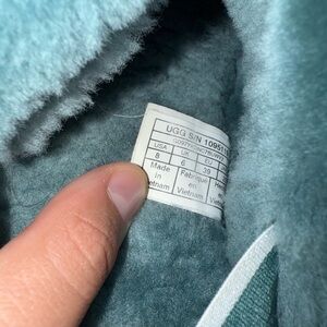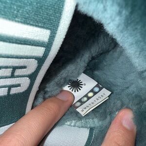 UGG FLUFF YEAH SLIDE ATLANTIC SLIPPERS - WOMEN'S. Size 8. Luxurious teal slippers with soft fur. Ideal for home comfort.