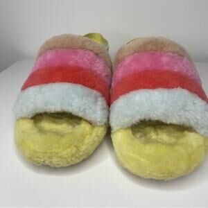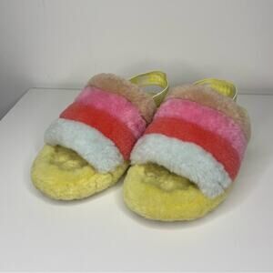 UGG FLUFF YEAH SLIDE in Pride Rainbow Yellow 7