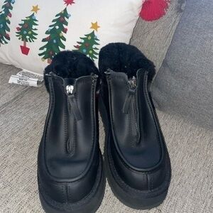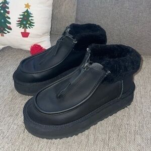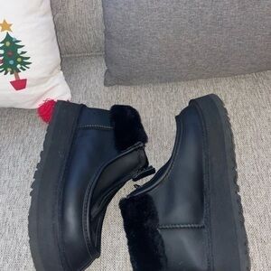UGG FUNKETTE platform BOOT ULTRA MATTE BLACK LEATHER ANKLE WOMEN'S size US 6