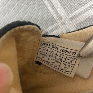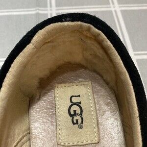 UGG Fierce 1006737 Slip On Sneakers Black Suede Loafers Women’s Size 9 Shoe with Sheepskin lining on interior back heel.