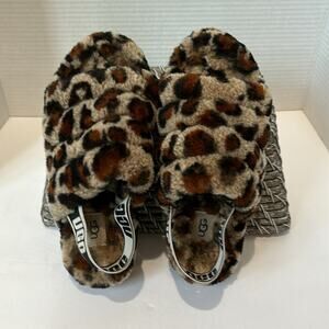 UGG Fluff Yeah Animal Print Sling Back Slippers Size 6