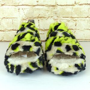Slightly pre-owned with light wear, UGG Fluff Yeah Animalia Slippers Women 8 Neon Green Black Leopard Fuzzy Sandals Grunge. Style 1127073