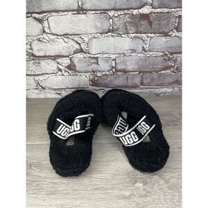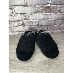 UGG Fluff Yeah Black Sheepskin Fur Slingback Slippers Sandals Women’s 8M US/39EU
