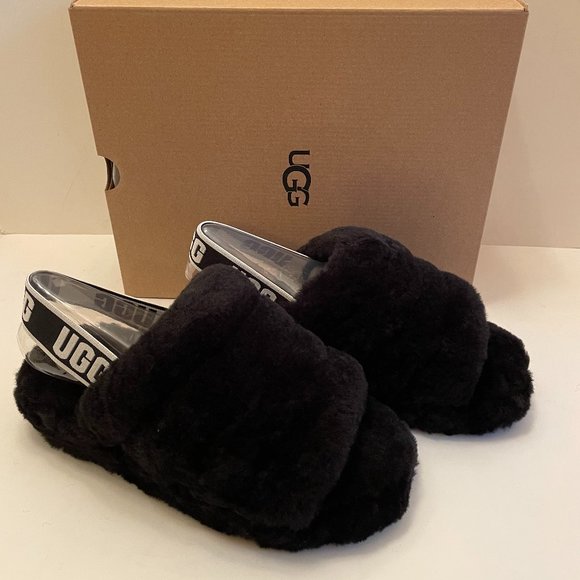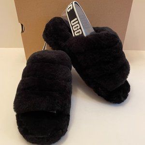 UGG Fluff Yeah Black Slipper worn
