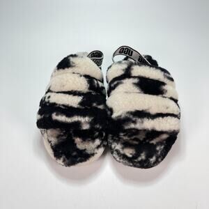 UGG Fluff Yeah Black White Marble Slip On Comfort Slide Sandals Youth Size 5