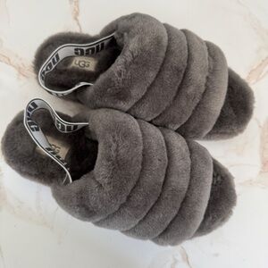 UGG Fluff Yeah Charcoal Slide Sandal - Size 8