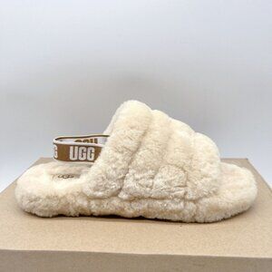 UGG Fluff Yeah Genuine Shearling Platform Slingback Sandal Slide Black US 6