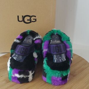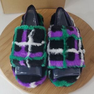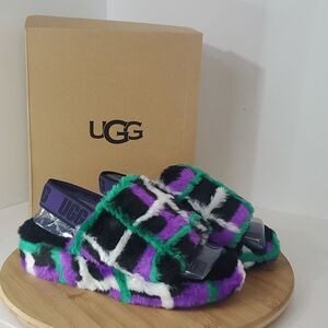 UGG Fluff Yeah Plaid Punk Slide Women's 7 Multi Wool Slingback Slipper